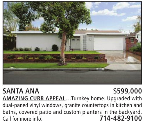 dual-paned vinyl windows, granite countertops in kitchen and baths, covered patio and custom planters in the backyard. Call formore info. 714-482-9100