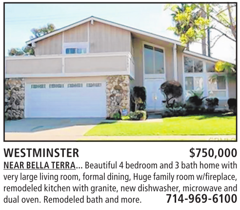 WESTMINSTER $750,000 NEAR BELLATERRA... Beautiful4bedroomand 3bathhomewith