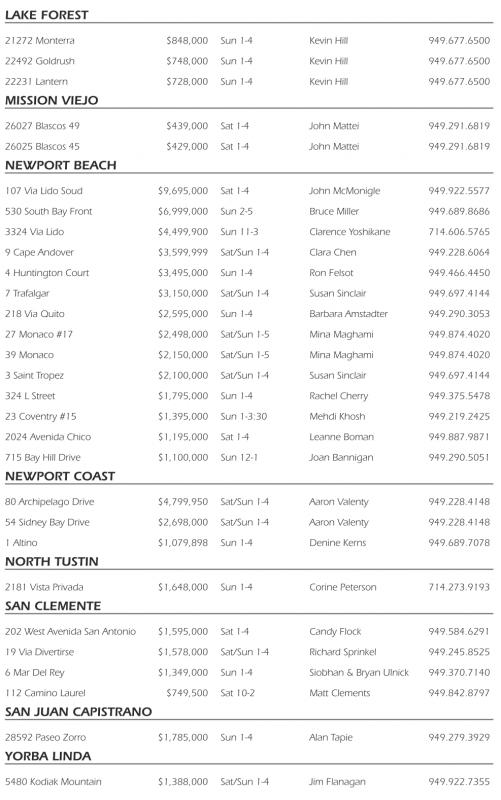28592 Paseo Zorro $1,785,000 Sun 1-4 Alan Tapie 949.279.3929 YORBA LINDA