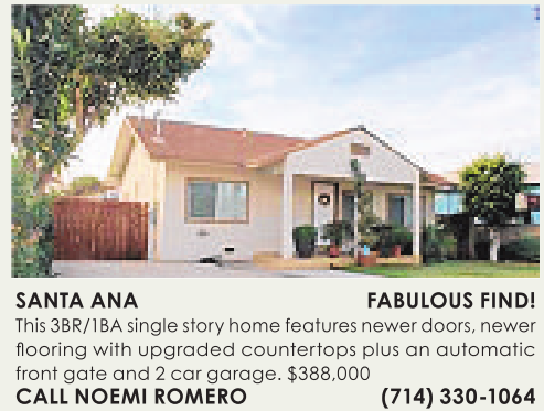 front gate and 2car garage. $388,000 CALL NOEMI ROMERO (714) 330-1064