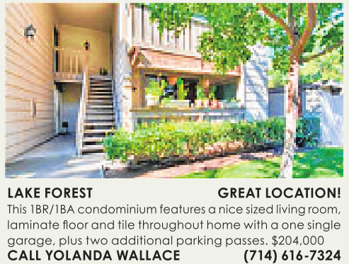 garage, plus two additional parking passes. $204,000 CALL YOLANDA WALLACE (714) 616-7324