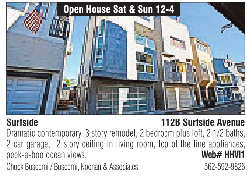 Dramatic contemporary,3story remodel, 2bedroom plus loft,21/2 baths, 2 car garage, 2 story ceiling in living room, top of the line appliances, peek-a-boo ocean views. Web# HHVI1 Chuck Buscemi /Buscemi, Noonan &Associates 562-592-9826