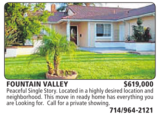 FOUNTAIN VALLEY $619,000 PeacefulSingle Story. Locatedinahighly desired location and