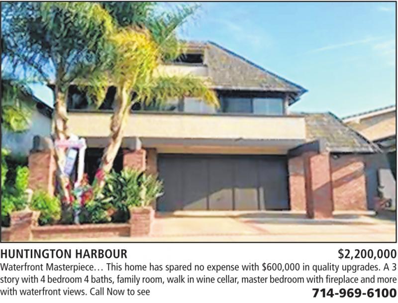 HUNTINGTON HARBOUR $2,200,000 Waterfront Masterpiece… This home has spared no expense with $600,000 in quality upgrades. A 3 storywith4bedroom4baths, family room,walkinwinecellar, masterbedroomwithfireplaceand more with waterfrontviews. Call Nowtosee 714-969-6100