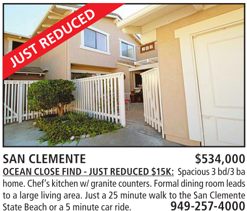 home.Chef’s kitchenw/granitecounters. Formal diningroomleads to alarge living area. Just a25minutewalk to theSan Clemente StateBeach or a5minutecar ride. 949-257-4000