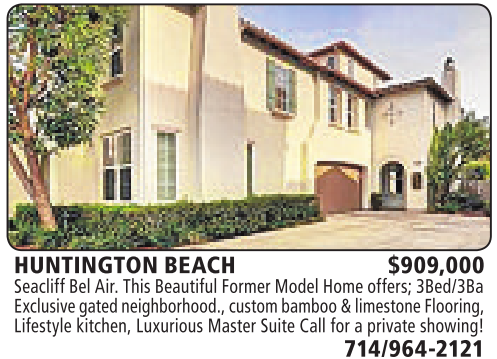 HUNTINGTON BEACH $909,000 Seacliff BelAir.ThisBeautifulFormerModelHomeoffers; 3Bed/3Ba Exclusive gated neighborhood.,custombamboo&limestoneFlooring, Lifestyle kitchen, Luxurious Master Suite Call for aprivate showing!