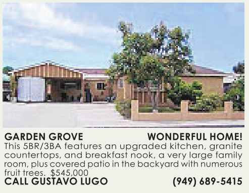 room,pluscoveredpatio in thebackyardwith numerous fruit trees. $545,000 CALL GUSTAVO LUGO (949) 689-5415
