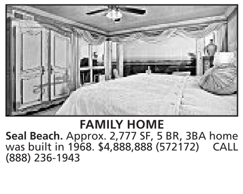 FAMILY HOME Seal Beach. Approx. 2,777 SF, 5 BR, 3BA home was built in 1968. $4,888,888 (572172) CALL (888) 236-1943
