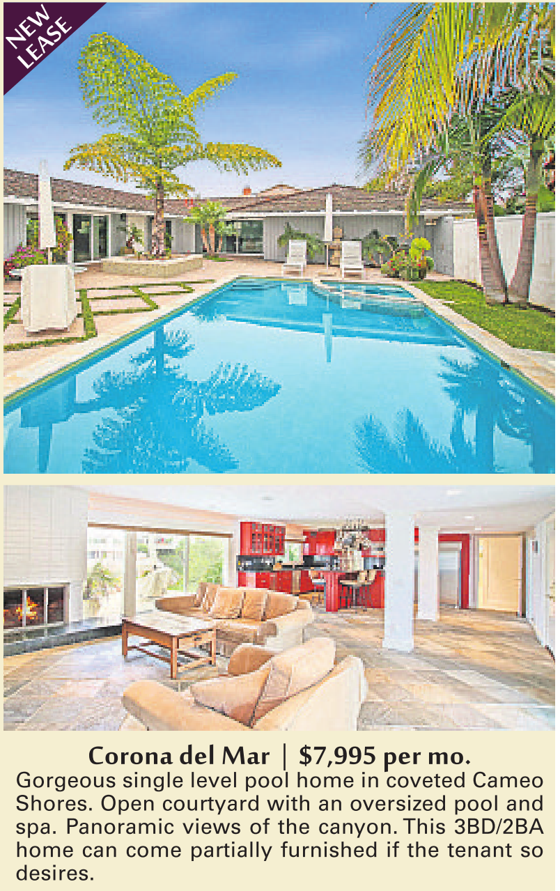 Shores. Open courtyard with an oversized pool and spa. Panoramic views of the canyon. This 3BD/2BA home can come partially furnished if the tenant so desires.