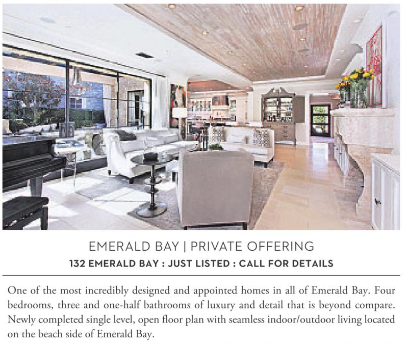 One of the most incredibly designed and appointed homes in all of Emerald Bay. Four bedrooms, three and one-half bathrooms of luxury and detail that is beyond compare. Newly completed single level, open floor plan with seamless indoor/outdoor living located on the beach side of Emerald Bay.