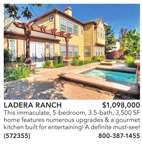 LADERA RANCH $1,098,000 This immaculate,5-bedroom,3.5-bath, 3,500SF