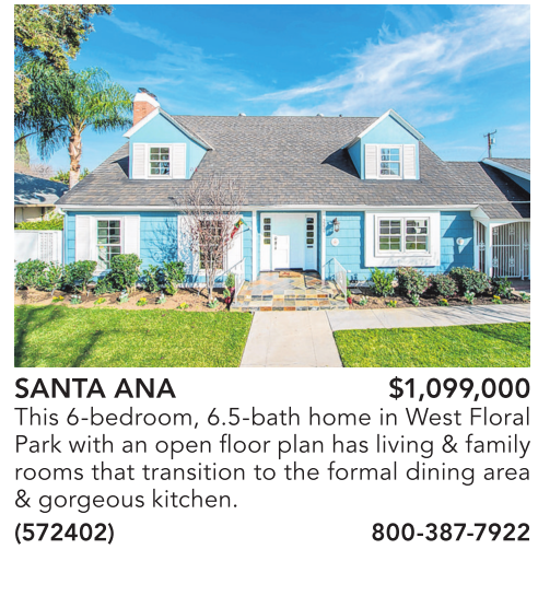SANTA ANA $1,099,000 This 6-bedroom, 6.5-bath home in West Floral
