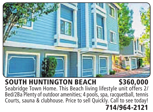 SOUTH HUNTINGTON BEACH $360,000 Seabridge Town Home. This Beach living lifestyle unit offers 2/ Bed/2Ba Plenty of outdoor amenities; 4pools,spa,racquetball,tennis Courts, sauna &clubhouse. Price to sell Quickly. Call tosee today!