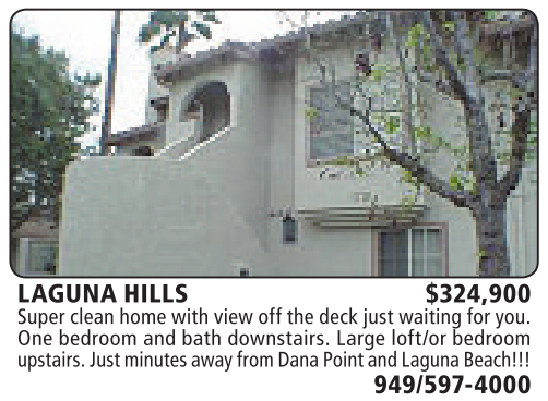 LAGUNA HILLS $324,900 Superclean home withviewoff thedeckjust waitingfor you. One bedroom and bath downstairs. Large loft/or bedroom upstairs. Just minutesawayfrom DanaPoint andLagunaBeach!!!