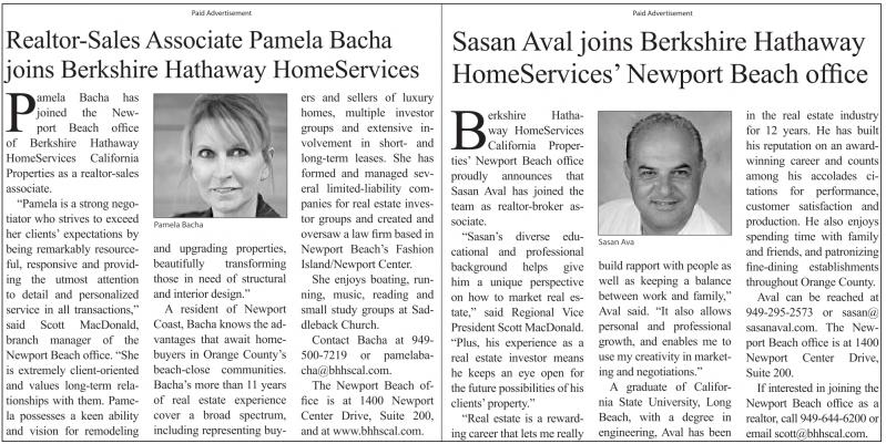 The Newport Beach office is at 1400 Newport Center Drive, Suite 200, and at www.bhhscal.com.