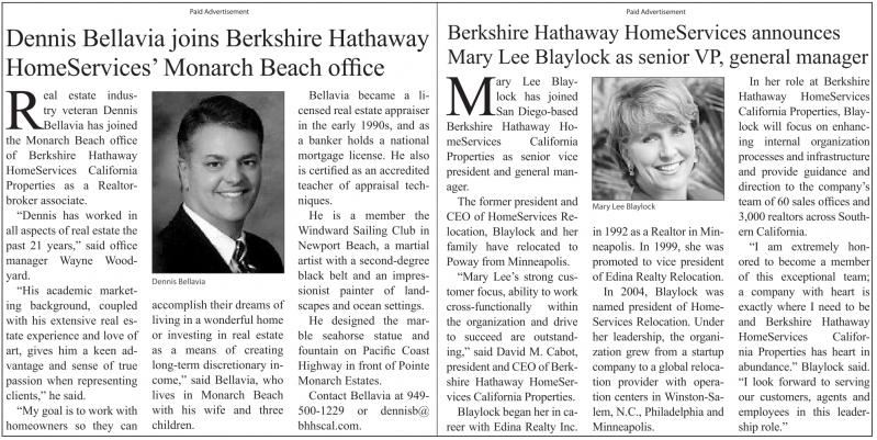 estate industry veteran Dennis Bellavia has joined the Monarch Beach office of Berkshire Hathaway HomeServices California Properties as a Realtorbroker associate.