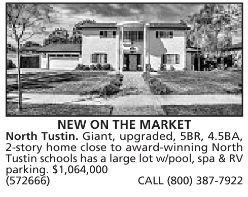 Tustin schools has a large lot w/pool, spa & RV parking. $1,064,000 (572666) CALL (800) 387-7922