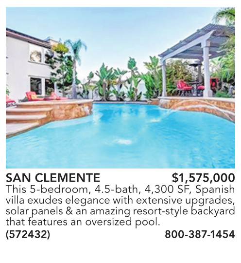 SAN CLEMENTE $1,575,000 This 5-bedroom, 4.5-bath, 4,300 SF, Spanish