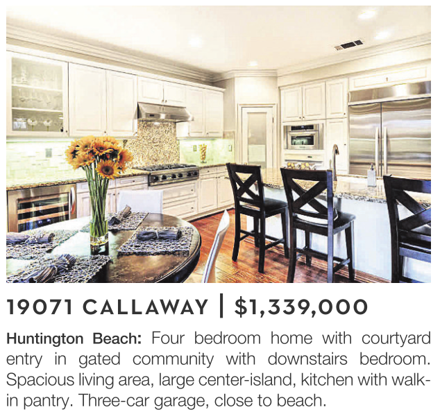 Huntington Beach: Four bedroom home with courtyard entry in gated community with downstairs bedroom. Spacious living area, large center-island, kitchen with walkin pantry. Three-car garage, close to beach.