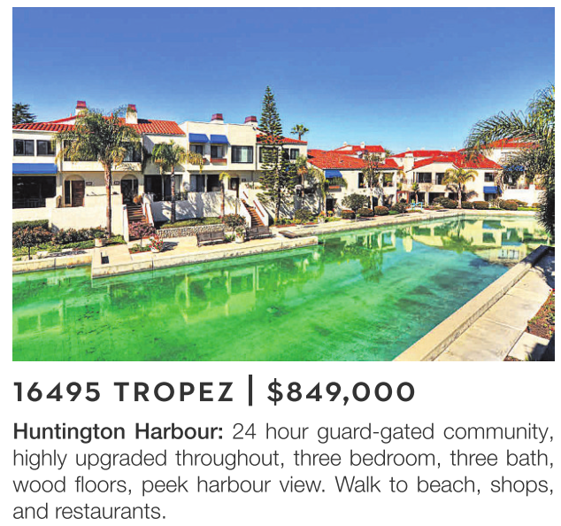 Huntington Harbour: 24 hour guard-gated community, highly upgraded throughout, three bedroom, three bath, wood floors, peek harbour view. Walk to beach, shops, and restaurants.