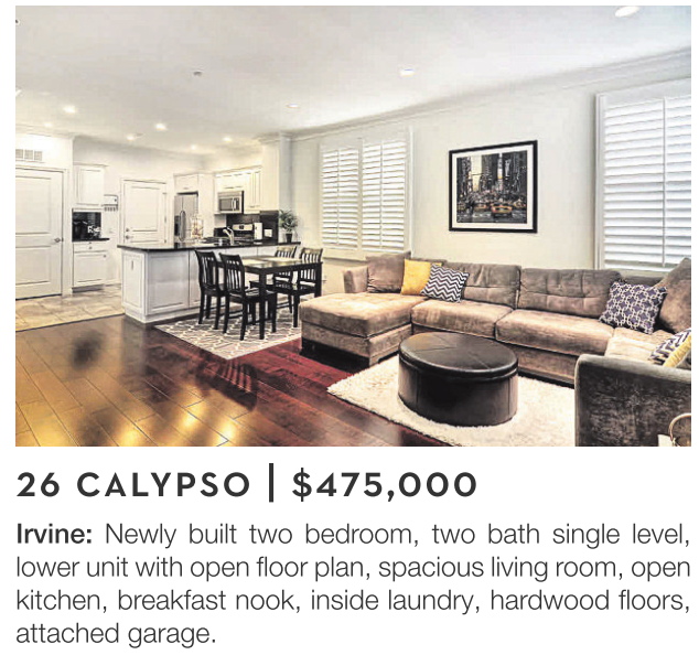Irvine: Newly built two bedroom, two bath single level, lower unit with open floor plan, spacious living room, open kitchen, breakfast nook, inside laundry, hardwood floors, attached garage.