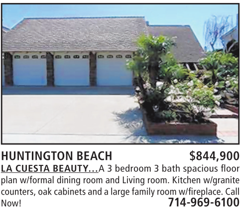 HUNTINGTON BEACH $844,900 LA CUESTA BEAUTY…A 3 bedroom 3 bath spacious floor