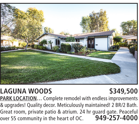 LAGUNA WOODS $349,500 PARK LOCATION… Complete remodelwithendless improvements