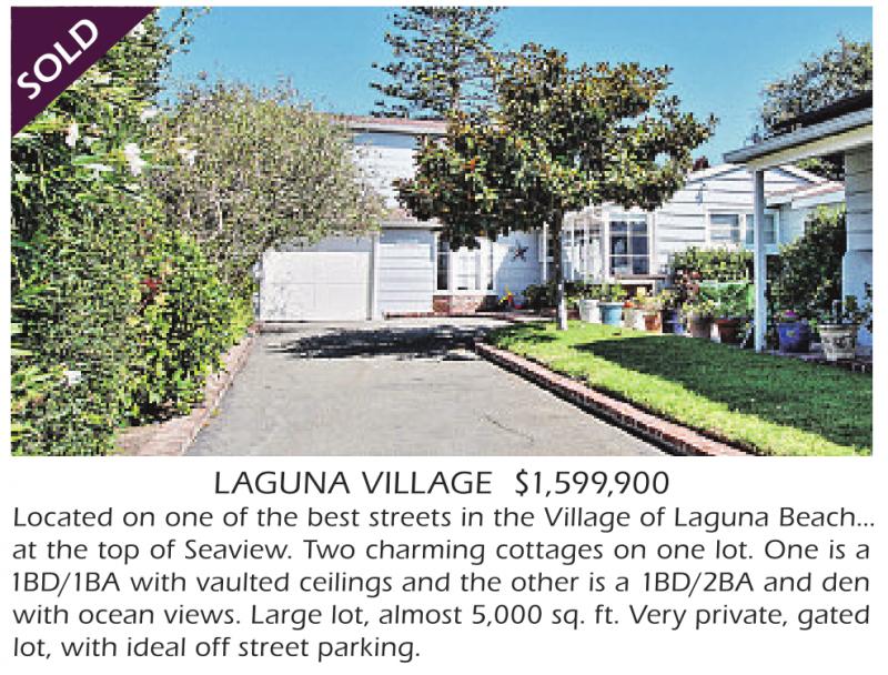 Located on one of the best streets in the Village of Laguna Beach... at the top of Seaview. Two charming cottages on one lot. One is a 1BD/1BA with vaulted ceilings and the other is a 1BD/2BA and den with ocean views. Large lot, almost 5,000 sq. ft. Very private, gated lot, with ideal off street parking.