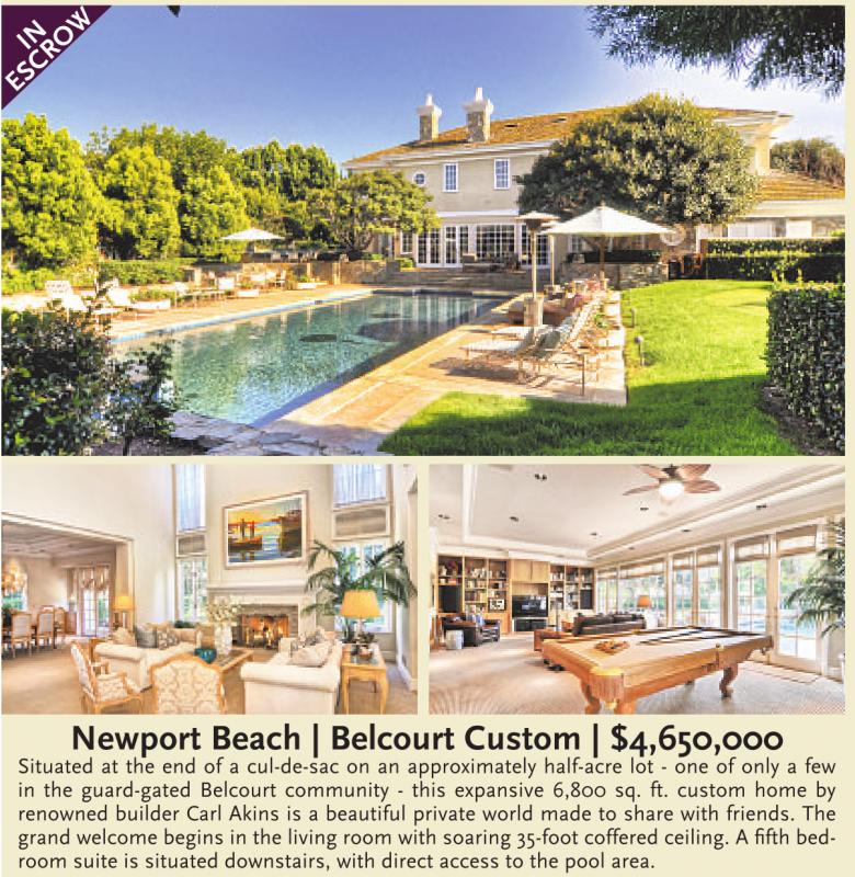 Newport Beach | Belcourt Custom | $4,650,000 Situated at the end of a cul-de-sac on an approximately half-acre lot - one of only a few in the guard-gated Belcourt community - this expansive 6,800 sq. ft. custom home by renowned builder Carl Akins is a beautiful private world made to share with friends. The grand welcome begins in the living room with soaring 35-foot coffered ceiling. A fifth bedroom suite is situated downstairs, with direct access to the pool area.