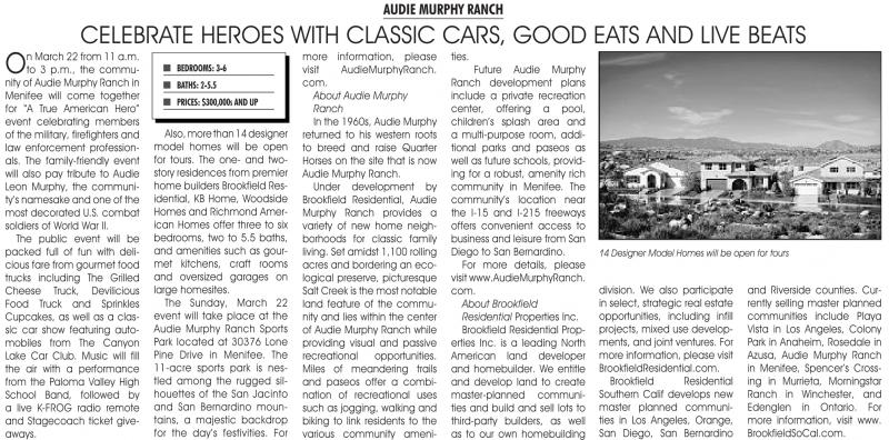 to 3 p.m., the community of Audie Murphy Ranch in Menifee will come together