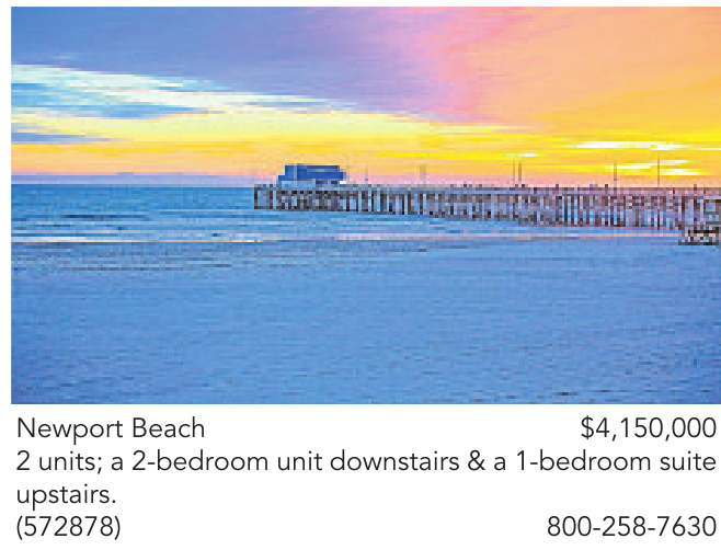 Newport Beach $4,150,000 2 units; a 2-bedroom unit downstairs & a 1-bedroom suite upstairs. (572878) 800-258-7630