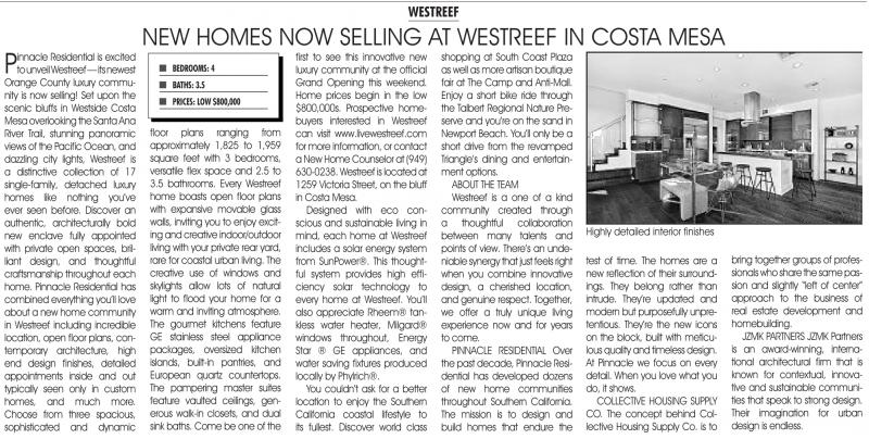 NEW HOMES NOW SELLING AT WESTREEF IN COSTA MESA
