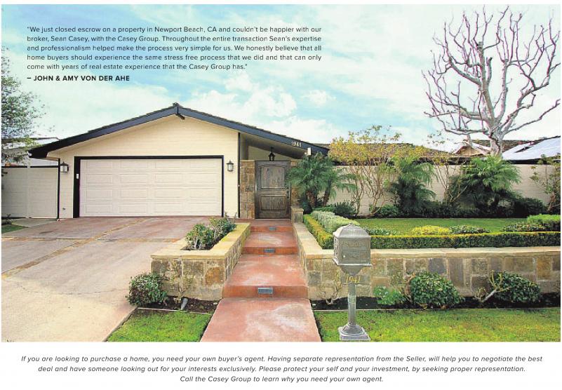 “We just closed escrow on a property in Newport Beach, CA and couldn’t be happier with our broker, Sean Casey, with the Casey Group. Throughout the entire transaction Sean’s expertise and professionalism helped make the process very simple for us. We honestly believe that all home buyers should experience the same stress free process that we did and that can only come with years of real estate experience that the Casey Group has.” – JOHN & AMY VON DER AHE