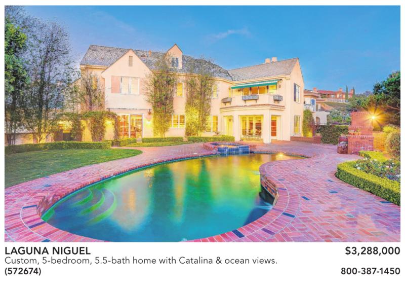 LAGUNA NIGUEL $3,288,000 Custom, 5-bedroom, 5.5-bath home with Catalina & ocean views. (572674) 800-387-1450