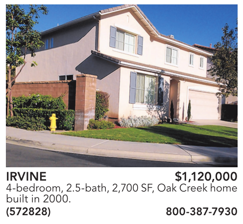 IRVINE $1,120,000 4-bedroom,2.5-bath, 2,700SF, OakCreek home built in 2000. (572828) 800-387-7930
