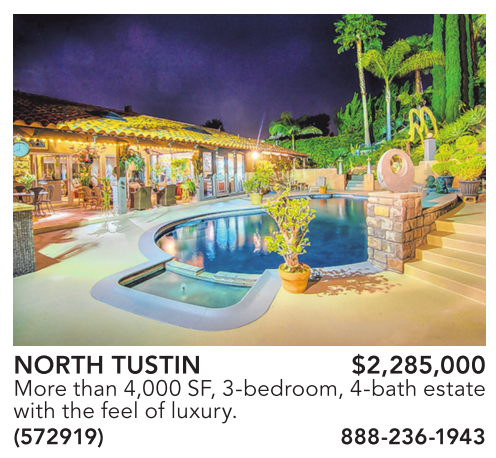NORTH TUSTIN $2,285,000 More than 4,000 SF, 3-bedroom, 4-bath estate with the feel of luxury. (572919) 888-236-1943
