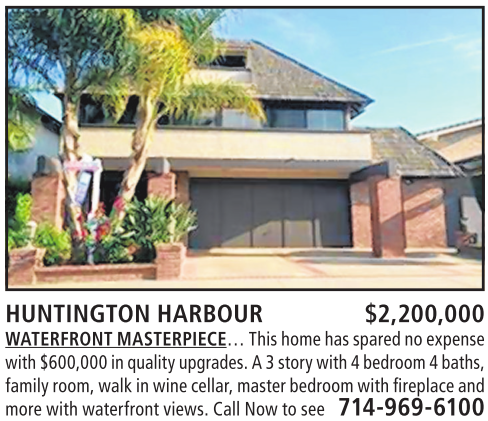 HUNTINGTON HARBOUR $2,200,000 WATERFRONTMASTERPIECE…This home has sparednoexpense with $600,000 in qualityupgrades. A3storywith4bedroom4baths, family room, walkinwinecellar, master bedroomwithfireplaceand more with waterfrontviews. Call Nowtosee 714-969-6100