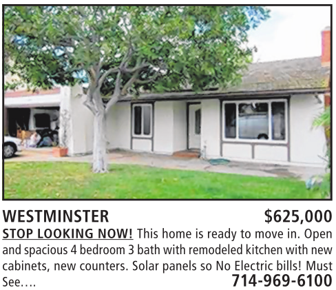 andspacious 4bedroom 3bathwithremodeledkitchen with new cabinets, new counters. Solar panels so No Electric bills! Must See…. 714-969-6100