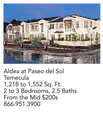 Aldea atPaseo del Sol Temecula 1,218 to 1,552 Sq. Ft. 2to3Bedrooms, 2.5 Baths From the Mid $200s 866.951.3900