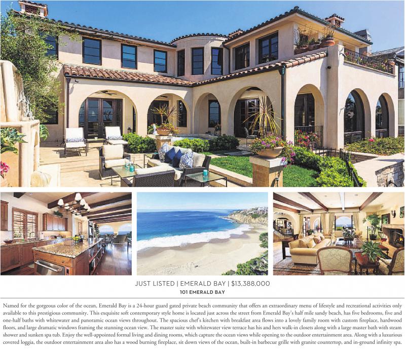 Named for the gorgeous color of the ocean, Emerald Bay is a 24-hour guard gated private beach community that offers an extraordinary menu of lifestyle and recreational activities only available to this prestigious community. This exquisite soft contemporary style home is located just across the street from Emerald Bay’s half mile sandy beach, has five bedrooms, five and one-half baths with whitewater and panoramic ocean views throughout. The spacious chef’s kitchen with breakfast area flows into a lovely family room with custom fireplace, hardwood floors, and large dramatic windows framing the stunning ocean view. The master suite with whitewater view terrace has his and hers walk-in closets along with a large master bath with steam shower and sunken spa tub. Enjoy the well-appointed formal livingand dining rooms, which capture the ocean views whileopening to the outdoorentertainment area. Along with aluxurious covered loggia, the outdoor entertainment area also has a wood burning fireplace, sit down views of the ocean, built-in barbecue grille with granite countertop, and in-ground infinity spa.