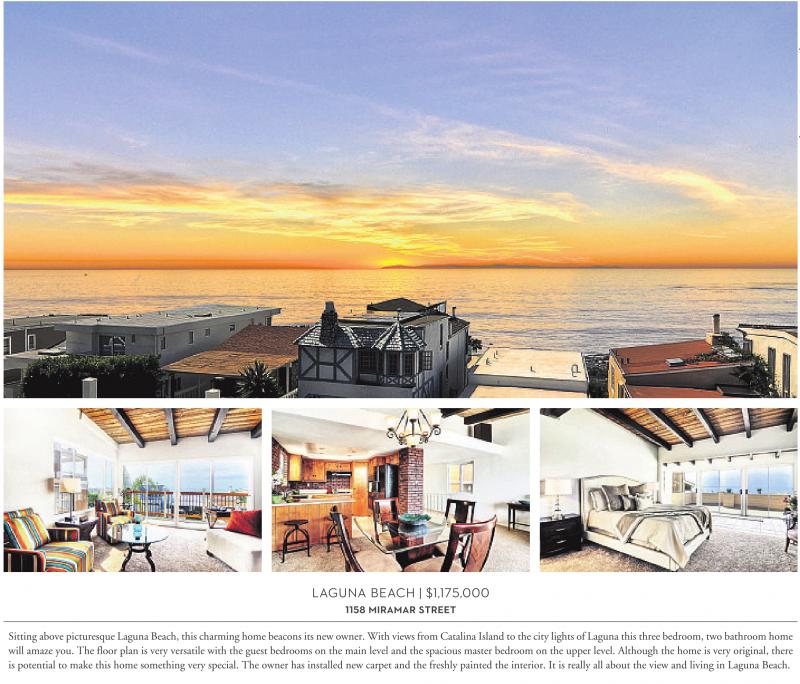 LAGUNA BEACH | $1,175,000 1158 MIRAMAR STREET Sitting above picturesque Laguna Beach, this charming home beacons its new owner. With views from Catalina Island to the city lights of Laguna this three bedroom, two bathroom home will amaze you. The floor plan is very versatile with the guest bedrooms on the main level and the spacious master bedroom on the upper level. Although the home is very original, there is potential to make this home something very special. The owner has installed new carpet and the freshly painted the interior. It is really all about the view and living in Laguna Beach.