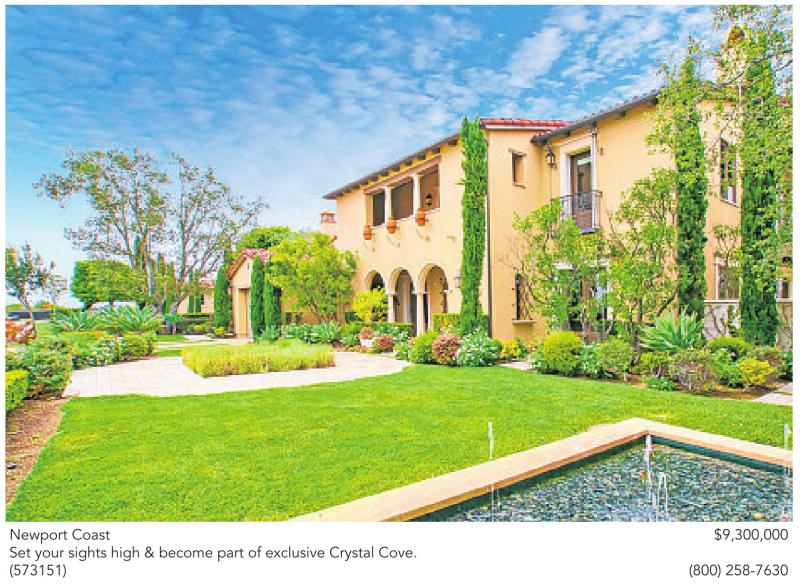 Newport Coast $9,300,000 Set your sights high & become part of exclusive Crystal Cove. (573151) (800) 258-7630