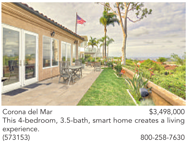 Corona del Mar $3,498,000 This 4-bedroom, 3.5-bath, smart home creates a living experience. (573153) 800-258-7630