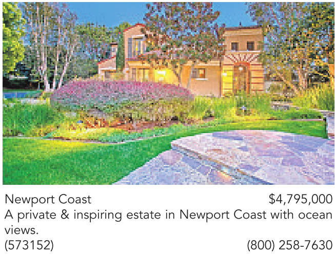 Newport Coast $4,795,000 A private & inspiring estate in Newport Coast with ocean views. (573152) (800) 258-7630