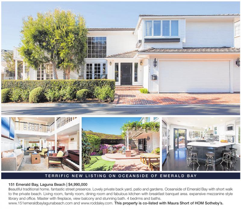 to the private beach. Living room, family room, dining room and fabulous kitchen with breakfast banquet area. expansive mezzanine style library and office. Master with fireplace, view balcony and stunning bath. 4 bedrms and baths. www.151emeraldbaylagunabeach.com and www.roddaley.com. This property is co-listed with Maura Short of HOM Sotheby’s.