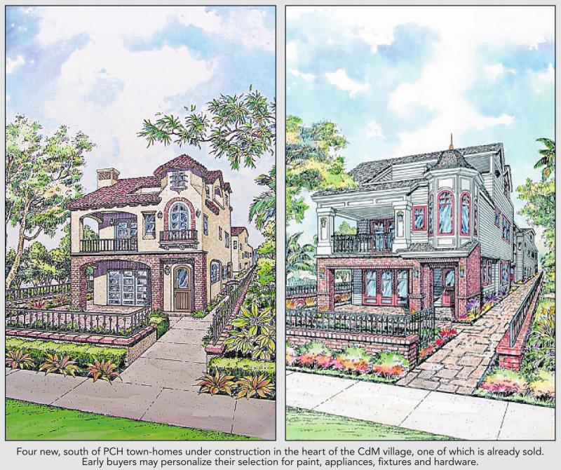 Four new, south of PCH town-homes under construction in the heart of the CdM village, one of which is already sold.