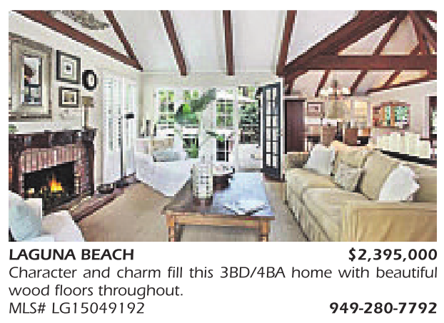 LAGUNA BEACH $2,395,000 Character and charm fill this 3BD/4BA home with beautiful wood floors throughout. MLS# LG15049192 949-280-7792