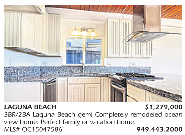 LAGUNA BEACH $1,279,000 3BR/2BA Laguna Beach gem! Completely remodeled ocean view home. Perfect family or vacation home. MLS# OC15047586 949.443.2000