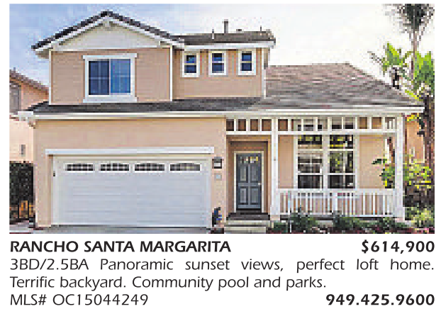 RANCHO SANTA MARGARITA $614,900 3BD/2.5BA Panoramic sunset views, perfect loft home. Terrific backyard. Community pool and parks. MLS# OC15044249 949.425.9600