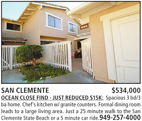 ba home.Chef’s kitchen w/ granite counters.Formal diningroom leads toalarge living area. Just a25minute walk to the San Clemente State Beach or a5minute car ride.949-257-4000